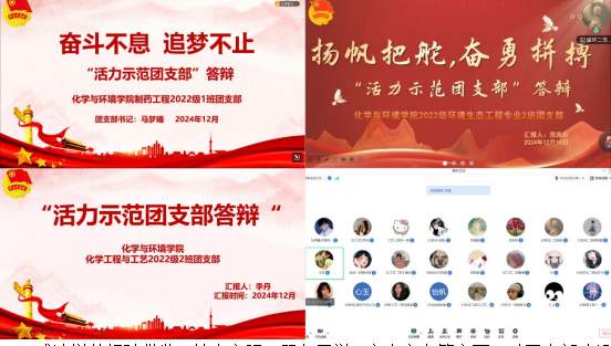 各年级团支部围绕支部班子好、团员管理好、活动开展好、制度落实好、作用发挥好五个方面,从团支部阶段性工作中总结反思,立足各支部实际情况,结合取得成就及亮点活动展开陈述。