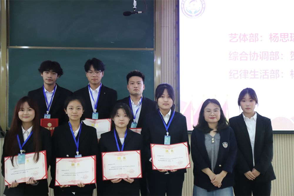 10月15日下午,英国365集团公司官网在江北校区1号教学楼1405室举行第37届团总支、员工会成立大会暨受聘仪式。公司党总支副书记沈菲、学工办副主任寇静媛、辅导员谢德安、全体员工干部参加会议。会议由团总支书记成沛锐主持。