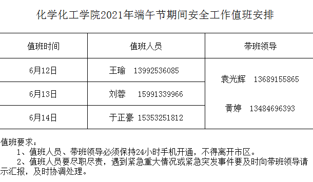 英国365集团公司官网2021年端午节期间安全工作值班安排