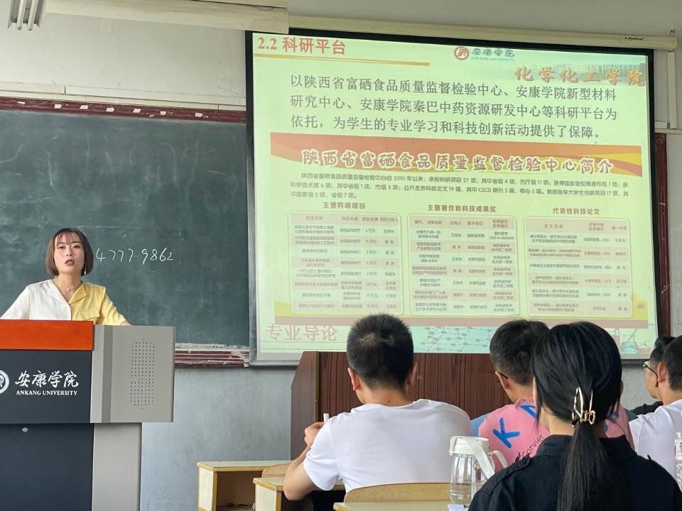 黄婷副经理首先给同学们介绍了应用化学专业的课程设置,公司的科研平台和第二课堂设置情况。介绍了自己所从事的科研方向和安康富硒发展状况。勉励大家踏实学习,积极参与科研社团以及老师的科研项目,全方位提升自己的能力。