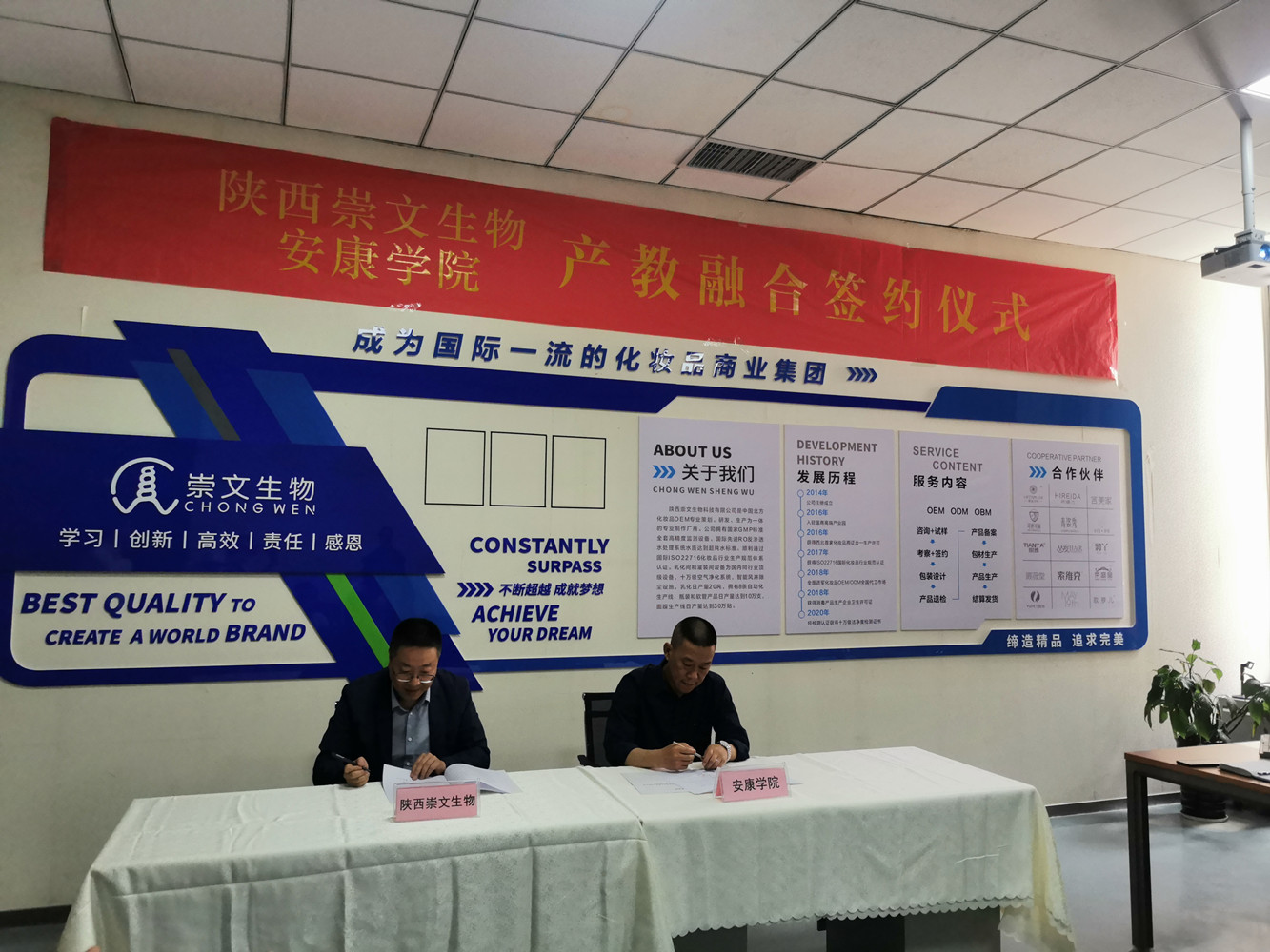为提升公司化妆品技术与工程专业办学水平,深入了解西安及其周边化妆品企业的用人需求和就业市场。5月19日,英国365集团公司官网王永东带队一行6人前往陕西崇文生物科技有限公司进行参观调研,围绕妆品行业人才需求、校企科研项目合作、员工综合素质能力培养等方面开展交流研讨,并现场签订了产教融合实习实践基地协议。