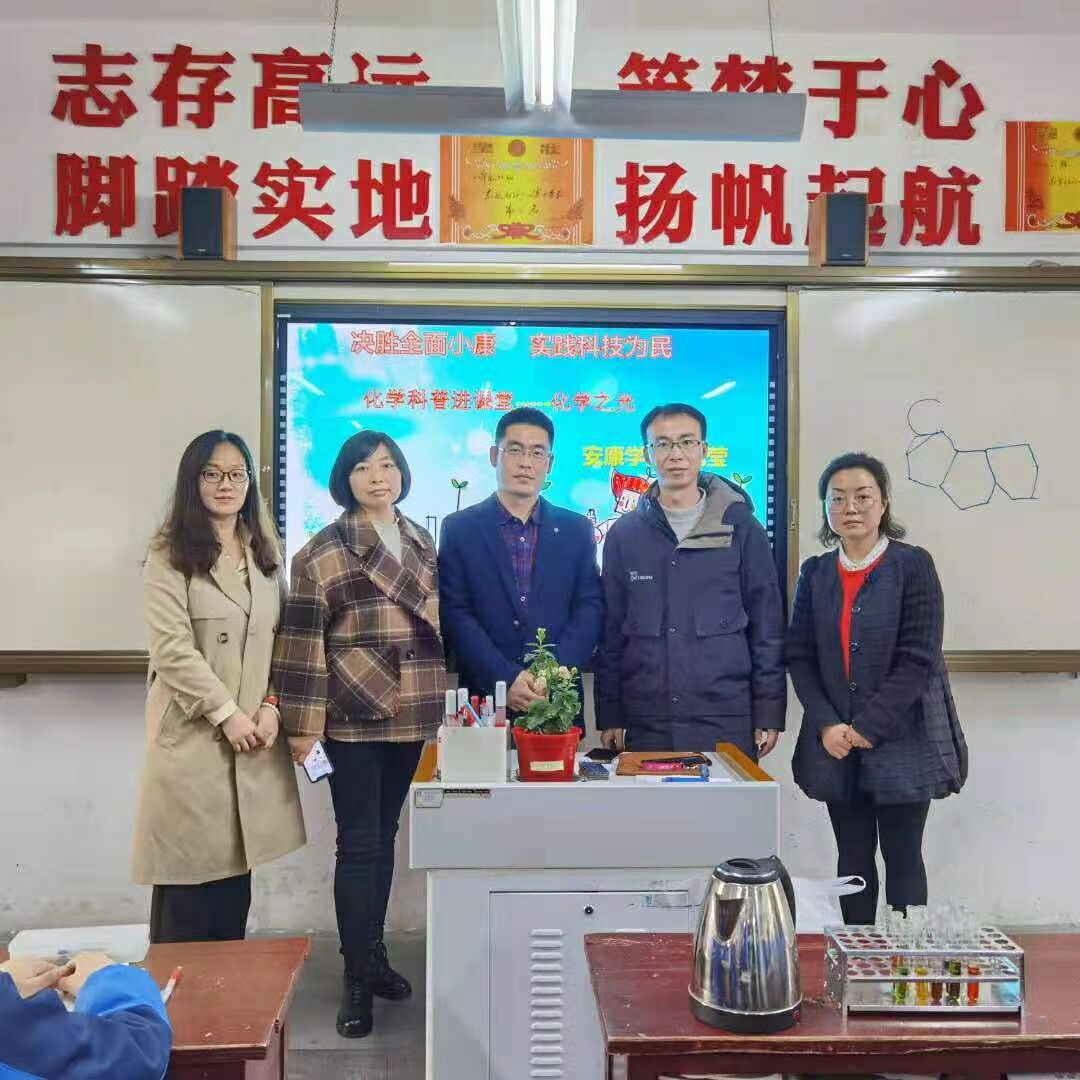 3月25日在黄婷副经理的带领下,英国365集团公司官网“化学之光”科普团赴安康市汉滨区初级中学开展青少年科普宣传活动。