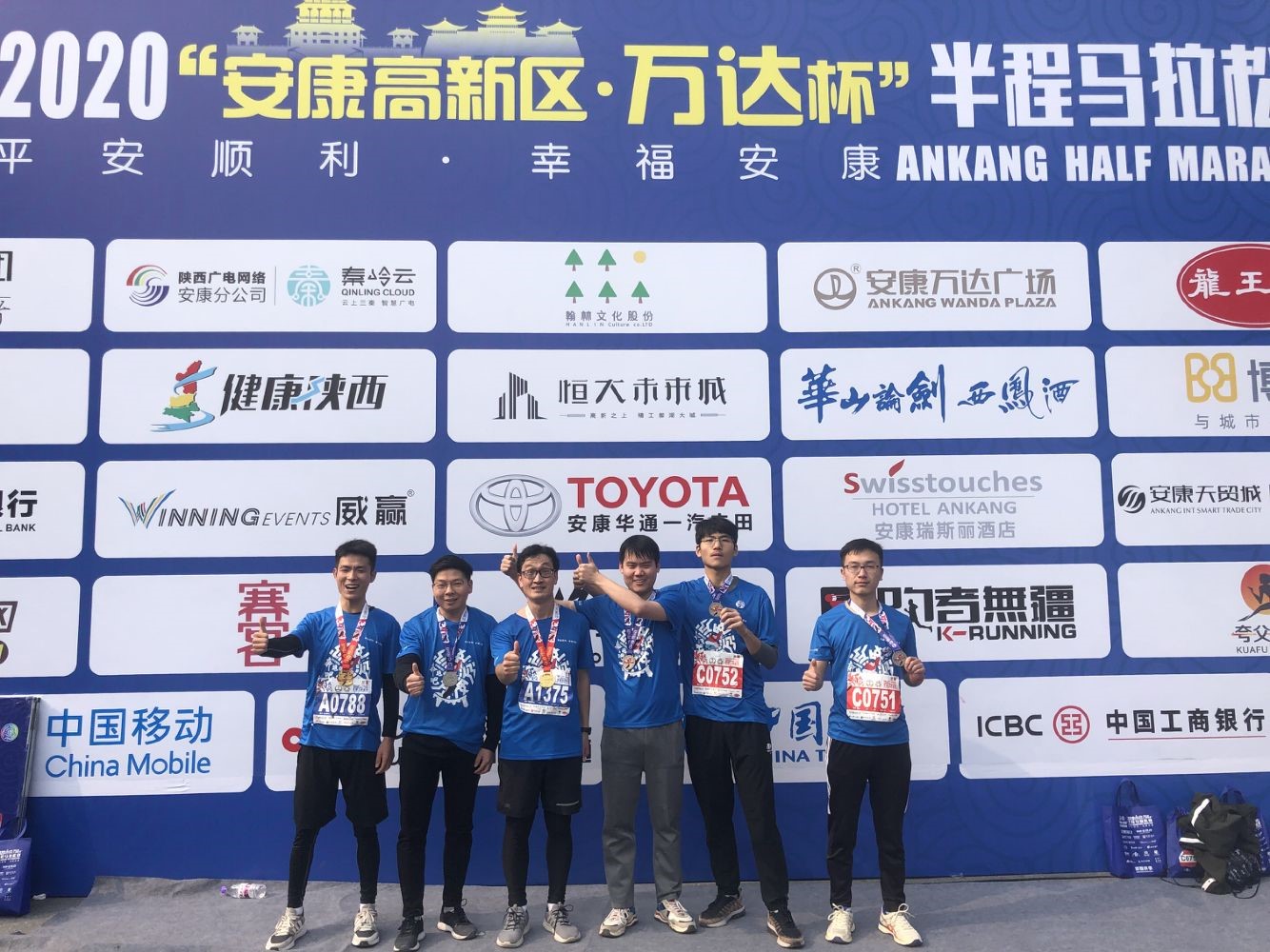 2020年11月15日,“平安顺利·幸福安康”2020安康半程马拉松比赛在安康市高新区万达广场火热开跑。公司共有3名教师和20余名员工参加比赛并全部安全完赛,100余名员工报名参加志愿者。其中2019级应用化学专业周超同学以1小时38分48秒的成绩完成半程马拉松,取得男子半程马拉松第167名。