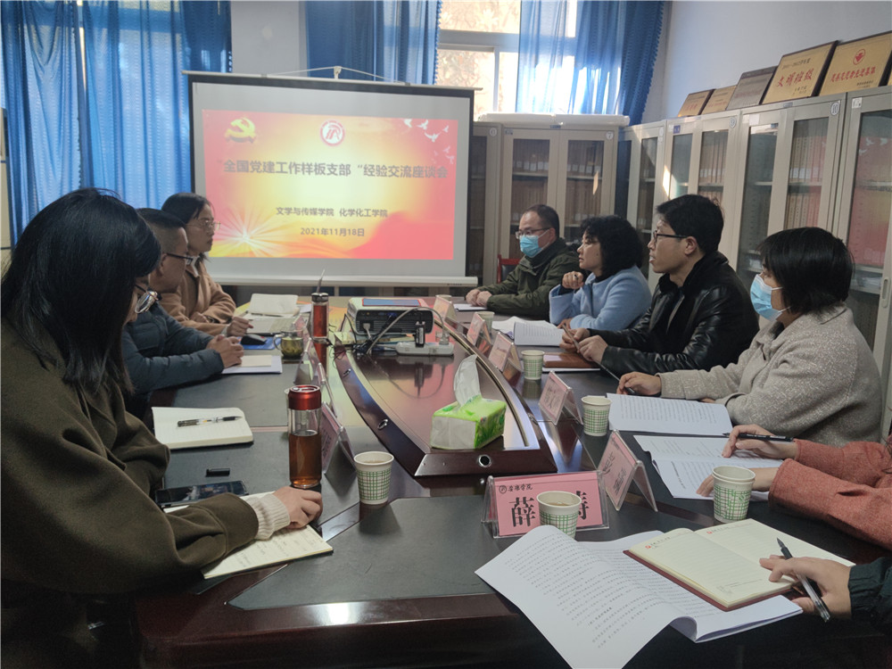 2021年11月18日,文学与传媒公司党总支同公司党总支在1325会议室举行基层党建工作经验交流会。文学与传媒公司党总支书记芦伟,党总支副书记杨海蓉,教工支部及员工支部书记一行6人同公司党总支书记王永东、员工党支部书记王瑜等进行交流座谈。