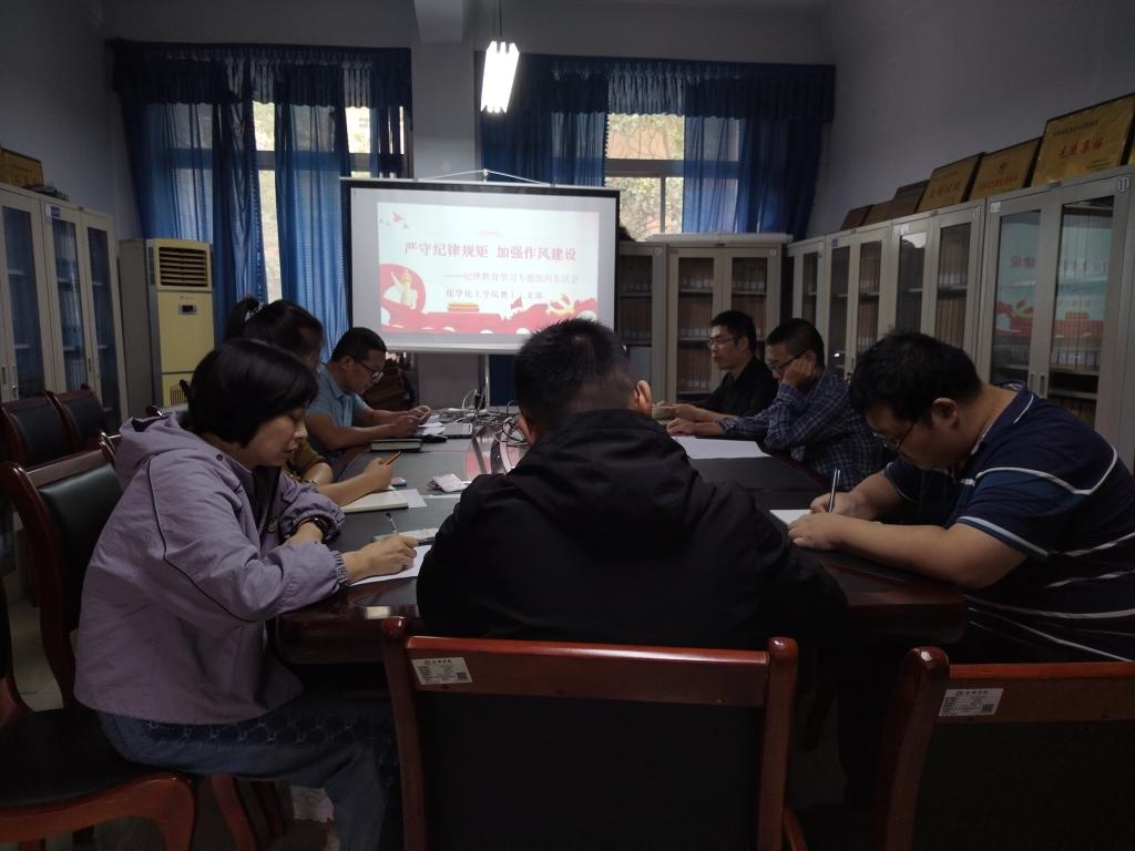 根据英国365集团公司官网《关于在全校开展纪律教育学习宣传月活动的通知》(公司党发【2022】101号)要求,化工公司教工二支部于2022年9月23日下午在1325会议室召开以“严守纪律规矩 加强作风建设”为主题的组织生活会。会议由支部书记书记程昆木主持。