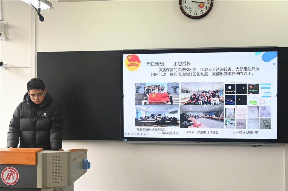各支部围绕支部班子好、团员管理好、活动开展好、制度落实好、作用发挥好五个方面,从团支部阶段性工作中总结反思,立足各支部实际情况,结合取得成就及亮点活动展开陈述。在问辩环节,评委老师对各支部的工作中的成效与不足进行了点评,并从经验借鉴、结合实际、服务同学、突出亮点等方面,为团组织建设的未来努力方向提出了有针对性的建议,鼓励团支委发挥带头作用,深入关心支部成员的成长动态,在群策群力、互学互鉴中不断取得新突破。