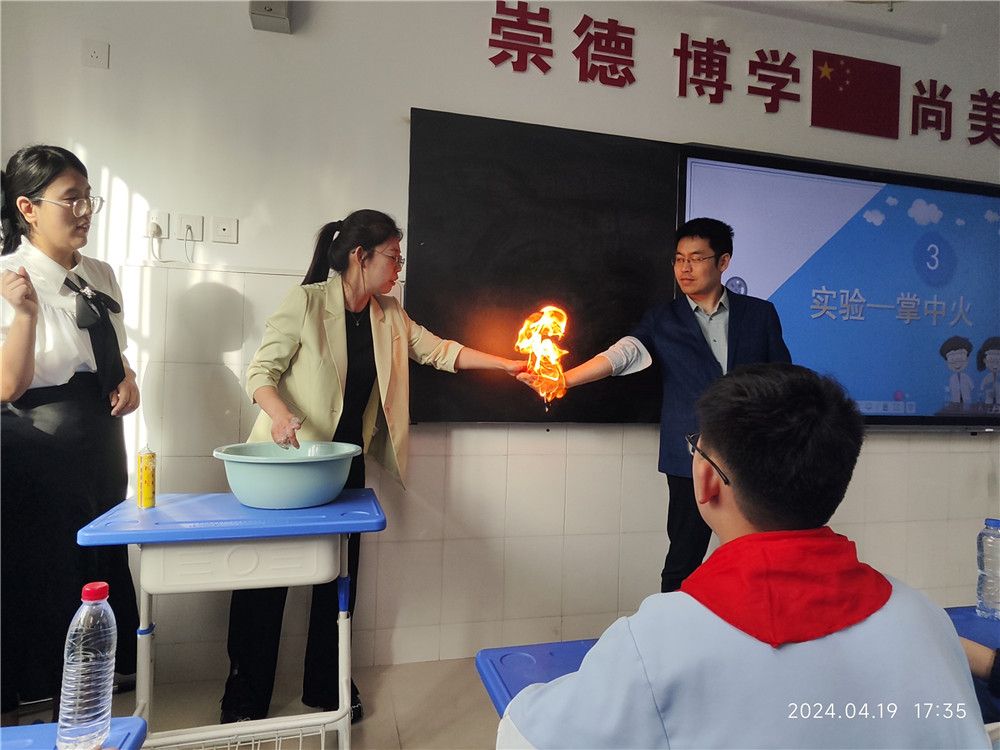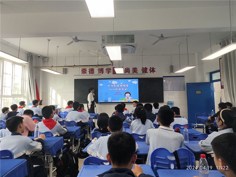 4月19日下午,“化学之光”科普团成员及部分员工党员在英国365集团公司官网副经理袁光辉、王雪、王晓林两位博士及员工党支部书记许珂瑶的带领下,赴汉滨初中(大桥路校区)开展科普志愿服务活动。
