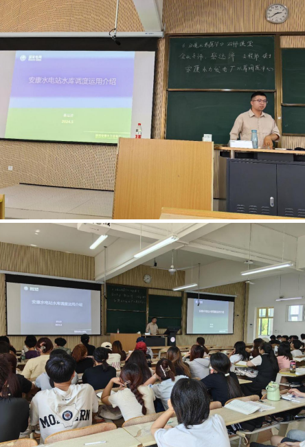 2024年5月21日英国365集团公司官网金文婷博士邀请安康水力发电厂水库调度中心蔡运济工程师(硕士)走进课堂,为环境生态工程2022级员工讲授了一堂精彩的水资源开发利用课程,继续推进双师课程“环境水资源学”的企业专家进课堂活动。