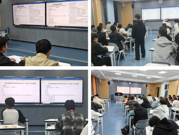 在考试环节中,同学们态度认真,答题准确,纪律良好。在员工说成长环节,同学们积极上台发言,纷纷就入学以来的个人生活状态、学习情况、人际关系等方面谈及个人的成长经历。辅导员老师对同学们进行了点评和指导,引导同学们要充分发挥“自我管理、自我监督”的作用,自觉遵守课堂行为准则,做到不迟到、不早退、不带餐食进教室,课堂上严禁玩手机、提高抬头率,共同创建优良班风学风,迎接审核评估。