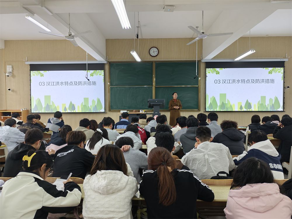 讲座中,金老师从汉江的起源与历史演化切入,清晰梳理了汉江“三源”格局、流域地理特征及气候水文条件。在汉江水文化板块,她详细解读了流域内86项国家级非物质文化遗产的分布与特色,重点介绍荆楚文化的历史地位、汉江茶文化的地域优势,以及汉调二黄、安康龙舟文化等非遗项目的艺术价值。针对汉江洪水特点及防洪建设,金老师结合安康水灾历史案例,分析了汉江上游洪水陡涨陡落、暴雨集中的特征,以及水文监测、水利工程建设的发展历程——从传统人工报汛到现代雷达监测、网络传输,从稀疏监测站点到全覆盖监测网络,如今汉江流域洪水预报精度达96%,防洪减灾能力实现质的飞跃。