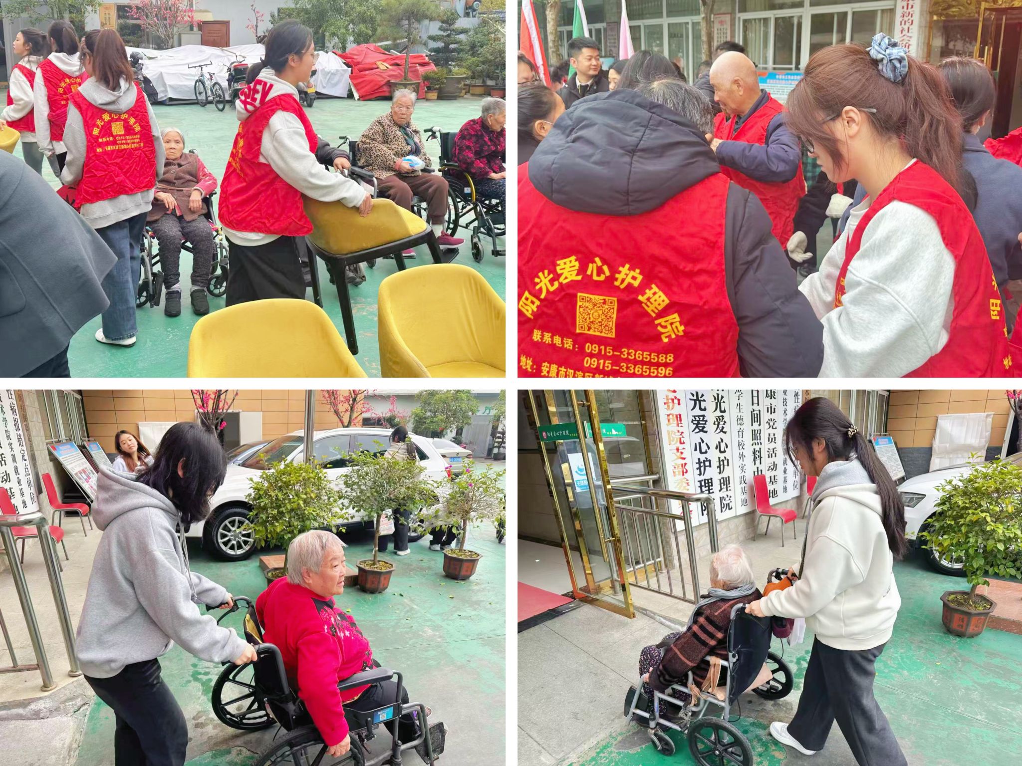 活动当天,志愿者们准时抵达敬老院,迅速投入现场服务工作。大家分工协作,有序布置活动座椅,整理场地设施,确保活动环境整洁、安全。针对部分行动不便的老人,志愿者们或悉心搀扶,或轻推轮椅,耐心协助他们抵达活动现场,展现了细致入微的关怀。