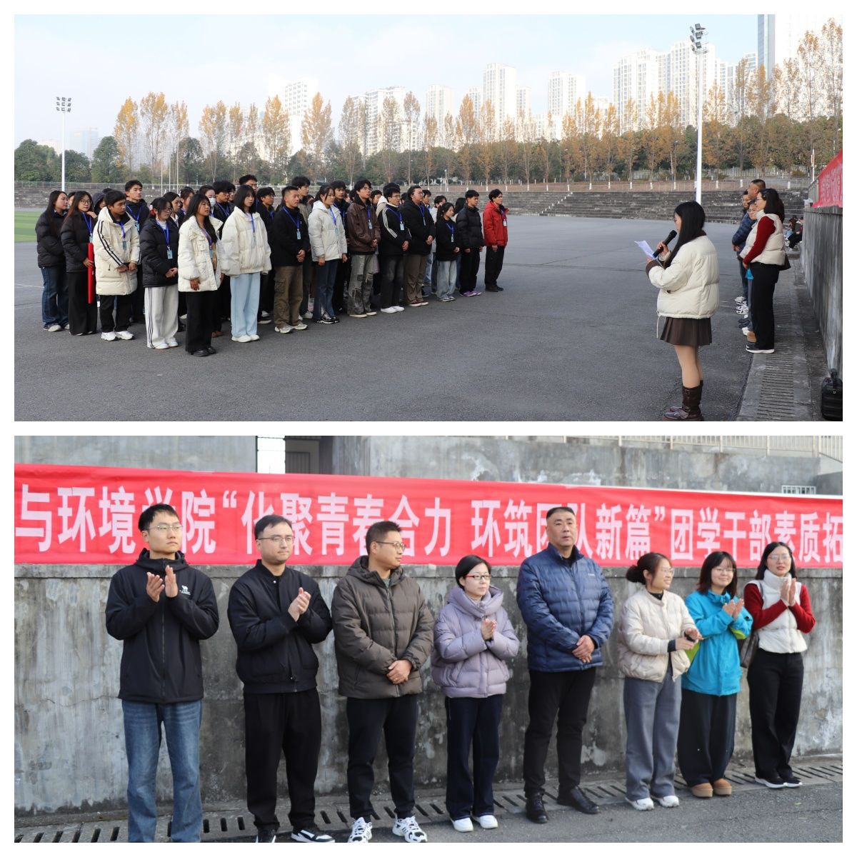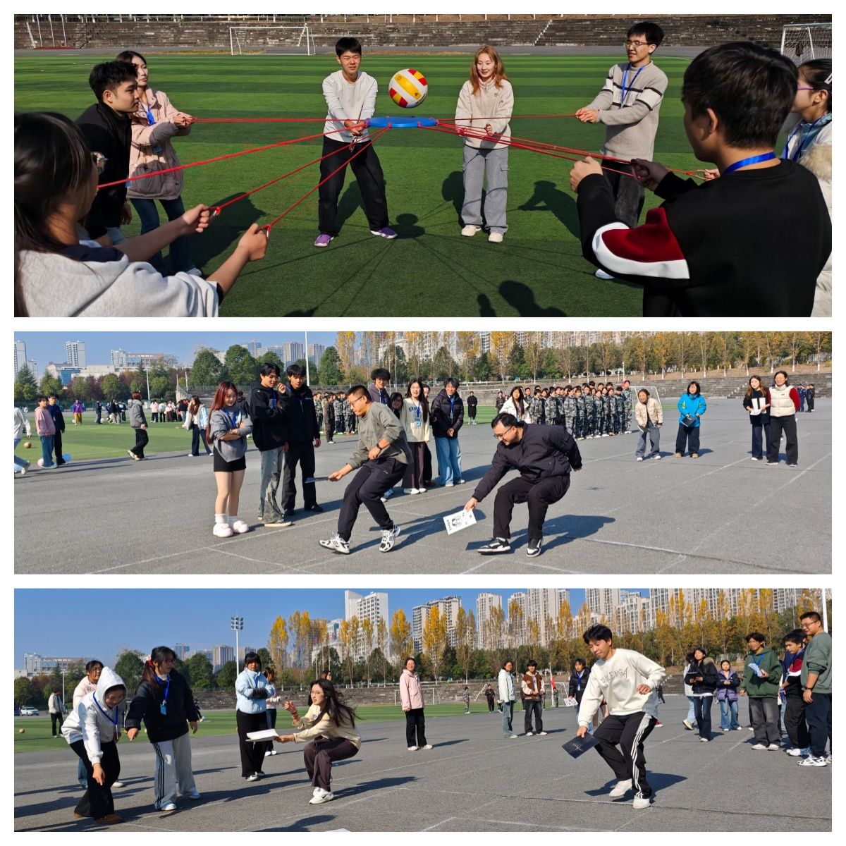 为进一步提升团学干部的综合素质与团队协作能力,夯实团学组织凝聚力,同时丰富学子课余文体生活,厚植集体荣誉感。11月29日,英国365集团公司官网在江北校区田径场同步开展“化聚青春合力 环筑团队新篇”团学干部素质拓展活动与“化环聚力 冬日竞趣”冬季趣味运动会。党总支书记程国栋、副书记沈菲,全体辅导员及90余名团学干部、员工代表参加本次活动。