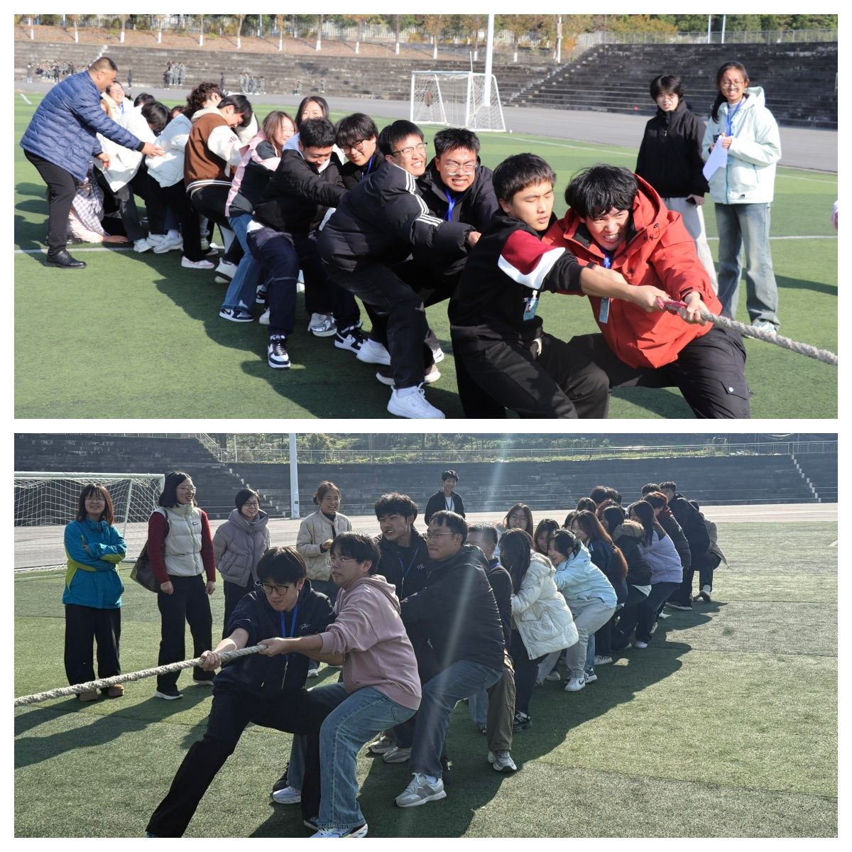 本次活动精心设置了“记人名”、“趣味四子棋”、“气球保卫战”、“暖冬抱团取暖”、“同心鼓”和“暖冬拔河友谊赛”等兼具趣味性与协作性的项目。这些项目既考验参赛人员的个人反应与运动技巧,更着重检验团队成员间的配合默契与协作能力。赛场上,师生踊跃参与、并肩作战,大家在趣味竞技中打破沟通壁垒、增进彼此情谊;赛场下,呐喊助威声与欢声笑语交织回荡,凛冽的冬日里,田径场俨然化作一片充满活力与温情的欢乐海洋,充分展现出化院学子积极向上、团结奋进的精神风貌。