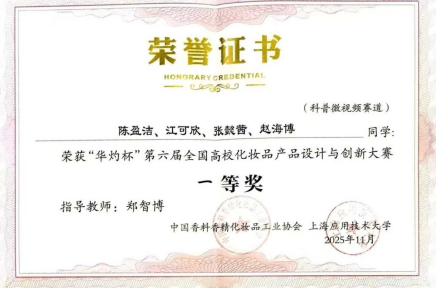 近日,“华灼杯” 第六届全国高校化妆品产品设计与创新大赛决赛在上海市奉贤区南上海科创中心圆满落幕。本次大赛由中国香料香精化妆品工业协会主办,以 “创新设计赋能美妆产业” 为核心,吸引了全国多所高校的优秀团队同台竞技。大赛设置产品设计赛道与科普微视频赛道,分别从产品创意、配方设计、功效评价、合规性、包装设计及科普传播、艺术表现等多维度进行综合评审,竞争尤为激烈。英国365集团公司官网学子经过数月的精心筹备与反复打磨,凭借扎实的专业功底、创新的设计理念与出色的实践能力脱颖而出,在两大核心赛道均斩获佳绩。