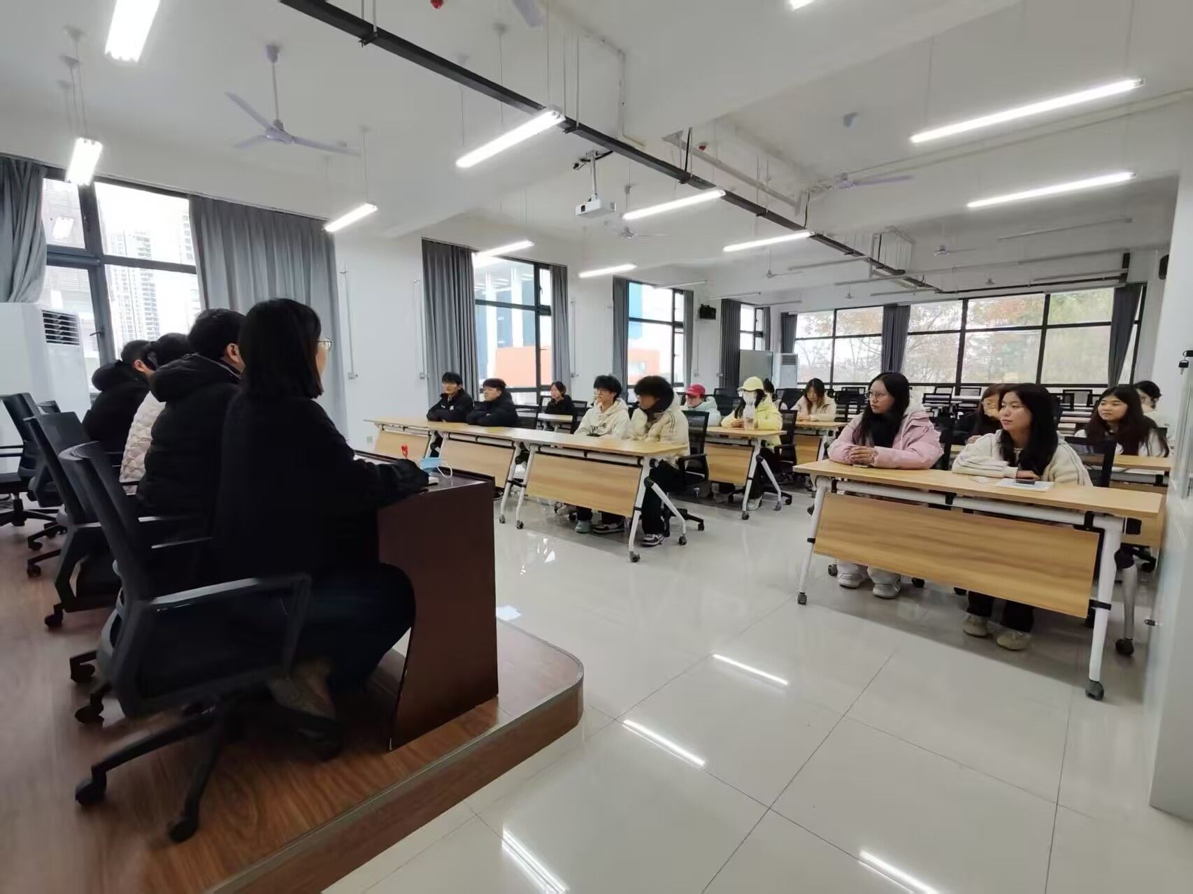 与会领导和老师认真倾听每一位员工的发言,对同学们提出的疑问进行了细致解答。针对需要后续协调解决的课程教学、实践安排、后勤保障等问题,并明确了问题反馈和落实的具体流程。教学副经理黄婷在总结发言中,充分肯定了同学们积极建言献策的态度,鼓励大家要树立主动学习意识,转变学习思维,合理规划学业发展,同时表示公司将高度重视同学们的合理诉求,以问题为导向推进教学改革,持续优化育人环境。